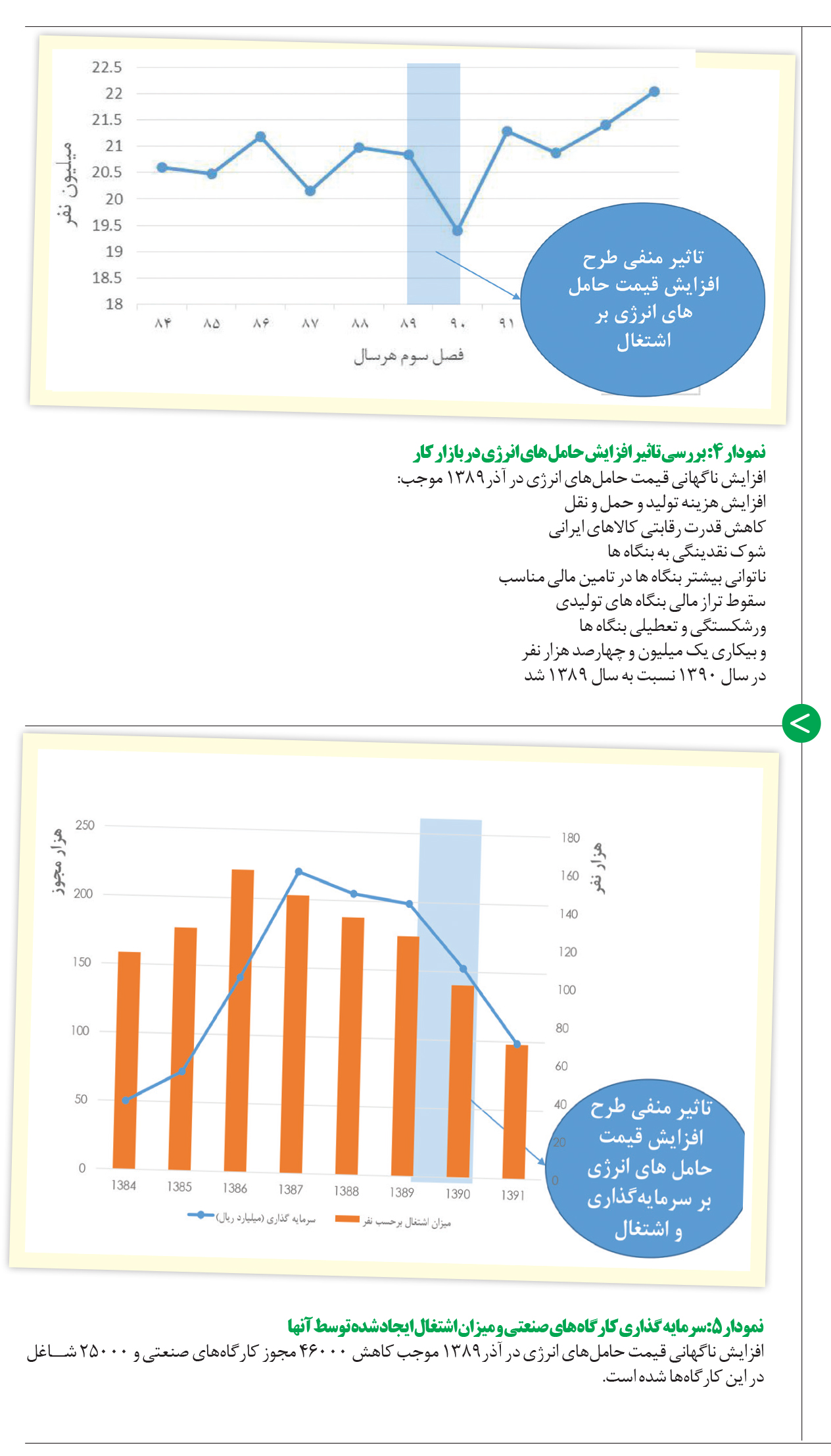برای مثال در دورهای که میوه وارد میشد به دلیل این بود که میوه خارجی با قیمت دلار تغییر میکرد و وقتی قیمت ارز ثابت بود، به نفع واردکننده بود که میوه وارد کند، در حالی که تولیدکننده مجبور بود مبلغی را بابت تولید میوه در داخل بپردازد که هر سال با نرخ تورم افزایش مییافت. بنابراین با کاهش نرخ ارز، کاهش اشتغال، کاهش درآمد خانوار و مهاجرت از روستا به شهر و افزایش بیکاری رخ میدهد و با گران شدن نرخ ارز، تورم افزایش مییابد. طبق قانون اوکان، یک درصد رشد اقتصادی معادل دو درصد اشتغال است. طبق محاسبه سازمان برنامهوبودجه، افزایش قیمت حاملهای انرژی ۷۵/۰ درصد رشد اقتصادی را کم میکند، بنابراین با کم شدن یکونیم درصدی اشتغال، ۳۶۰ هزار شغل از دست میرود. متاسفانه اقتصاد ایران دارای رشد اقتصادی است، اما این رشد فراگیر نیست. یعنی همه اقشار و طبقات بهطور منصفانه از مزایای رشد بهرهمند نمیشوند و چه بسا در دورههای رشد اقتصادی، وضعیت معیشتی برخی از طبقات بدتر شود. این مطالعه نشان میدهد با رشد اقتصادی، وضعیت معیشتی و درآمدی دهکهای ثروتمند بهبود یافته، اما وضعیت دهکهای فقر تفاوت چندانی نکرده است.