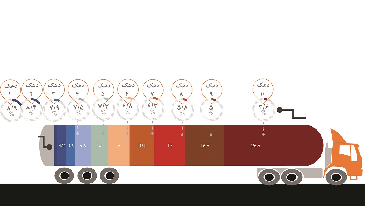 در تحقیق مذکور، سهم هزینه سوخت در دهکهای مختلف درآمدی تعیین شد. برای محاسبه دهک، جمعیت کشور به ۱۰ قسمت برابر با جمعیت یکسان تقسیم میشود. از سوی دیگر، این جمعیت بر اساس درآمد از بیشترین درآمد تا کمترین درآمد ردهبندی میشود و کسانی که در یک بازه درآمدی مشخص هستند در یک دهک قرار میگیرند. بنابراین اگر گفته میشود جمعیت دهک اول ۲ میلیون و ۴۰۰ هزار خانوار است به این دلیل است که جمعیت خانوار در کل ۲۴ میلیون خانوار است که این تعداد شامل ۸۰ میلیون نفر جمعیت کل کشور میشود.