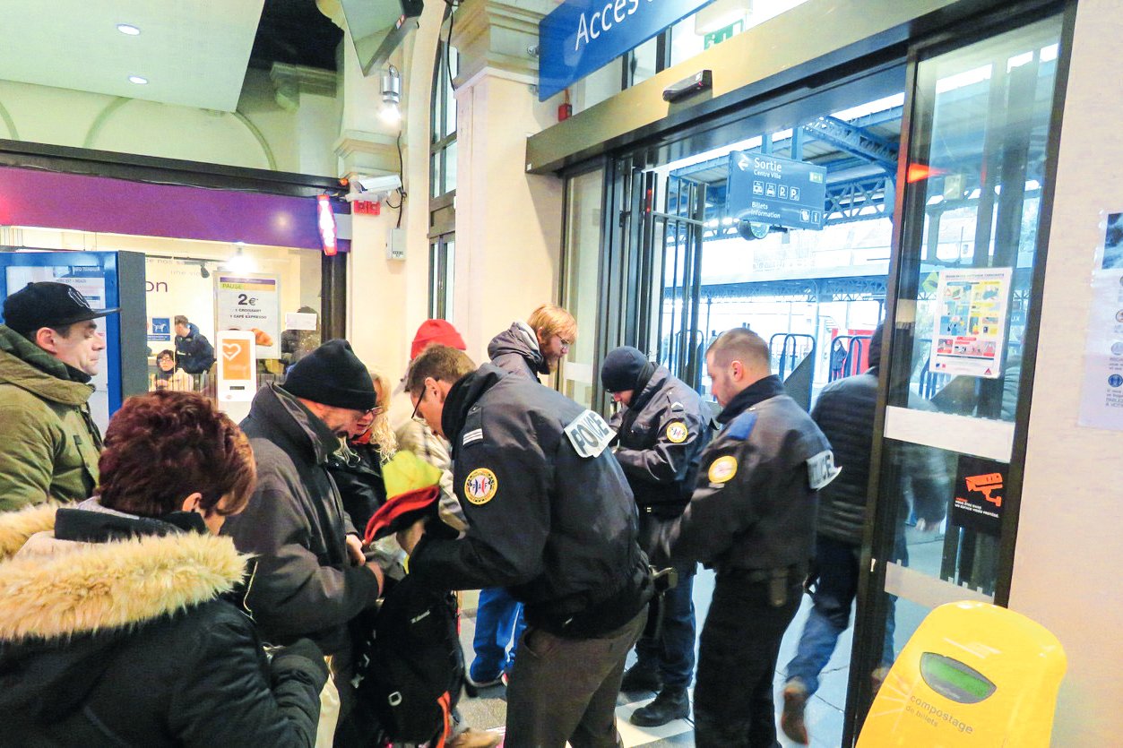حدود ساعت ۹ صبح، از آنجایی که در پاریس تعدادی از ایستگاههای مترو را به دلایل امنیتی بسته بودند، ما ۷، ۸ ایستگاه قبل از مقصدمان، پلس دو لتویل، مترو را ترک کردیم. در آنجا، آنچه از همه برجستهتر بود، سکوت غریب و حتی غمانگیز خیابان بود که مرتبا با صدای آژیر پلیس شکسته میشد. تمام پنجرههای مغازهها در طول شب با تخته پوشانده شده بود و تنها پس از طی ۵۰۰ متر اولین ایستهای بازرسی نیروهای پلیس را دیدیم که مردم و کیفهایشان را چک میکردند. یک نفر در مقابل ما که بعد از تظاهرات عینک شنایش توسط پلیس مصادره شد، با خشونت به دیوار چسبانده شد. ما بدون دردسر از ایست بازرسی عبور کردیم، اگر در وسایلمان حتی یک دستکش هم داشتیم، شک پلیس را برمیانگیخت.