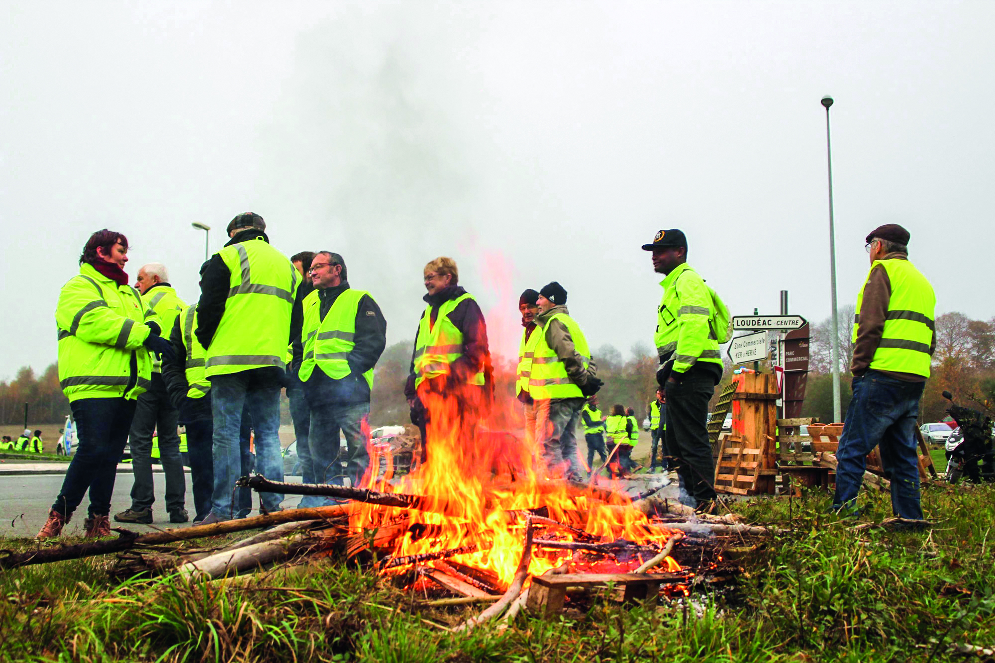 از ماه نوامبر، جنبش جلیقهزردها فرانسه را تکان داد. جنبشی که واکنشی عمومی بود به طرح پیشنهادی رییسجمهور مکرون برای افزایش مالیاتهای سوخت به آن منظور که پرداخت هزینههای گذر به فناوریهای «محیطزیستی» را بر فقرا تحمیل کند. جنبش جلیقهزردها، همچون جنبش اشغال، به جای دربرگیری اهداف و ارزشهای عمومی، پیرامون اقدامات تاکتیکی مشترک و نارضایتی عمومی شکل گرفت. در نتیجه، این جنبش صحنه نبردی شد برای بسیاری از جناحهای مختلف سیاسی. حزب راستگرای افراطی در ابتدا از ماهیت «غیرسیاسی» جنبش برای تحت نفوذ درآوردن آن، مخصوصا به صورت اینترنتی، استفاده کرد، اما با گسترش یافتن جنبش و بالا گرفتن درگیریها با پلیس، هرجومرجطلبان و دیگر گروههای شورشگر کنترلناپذیر نیز از مدعیانی شدند که از درون این جنبش سر برآوردند.