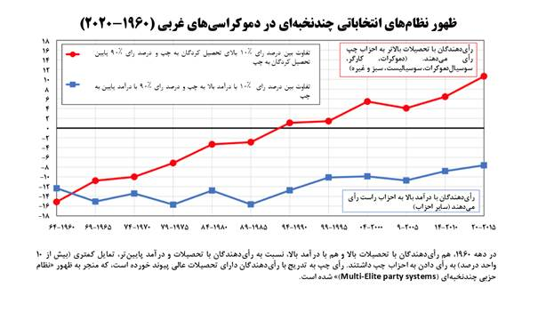 در دهههای ۱۹۵۰ و ۱۹۶۰، هم افراد کمدرآمد و هم افراد کمسواد از احزاب طرفدار سیاستهای بازتوزیعی و حمایتی حمایت میکردند. اما امروز این ائتلاف سنتی فروپاشیده است. نخبگان جامعه به دو گروه تقسیم شدهاند: احزاب طرفدار سیاستهای بازتوزیعی اکنون بیشتر به «نخبگان تحصیلی» گرایش دارند؛ افرادی که تحصیلات بالایی دارند؛ اما ثروت زیادی ندارند و پیکتی آنها را «چپ برهمنی» مینامد. در مقابل، «نخبگان درآمدی» یا ثروتمندان، همچنان از احزاب طرفدار سیاستهای بازارمحور حمایت میکنند. این شکاف باعث شده طبقات پایین احساس کنند توسط هر دو گروه رها شدهاند.