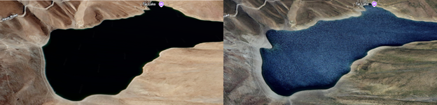 سمت راست: وضعیت دریاچه هویر در سال 1403 – سمت چپ: وضیت دریاچه هویر در سال 1398