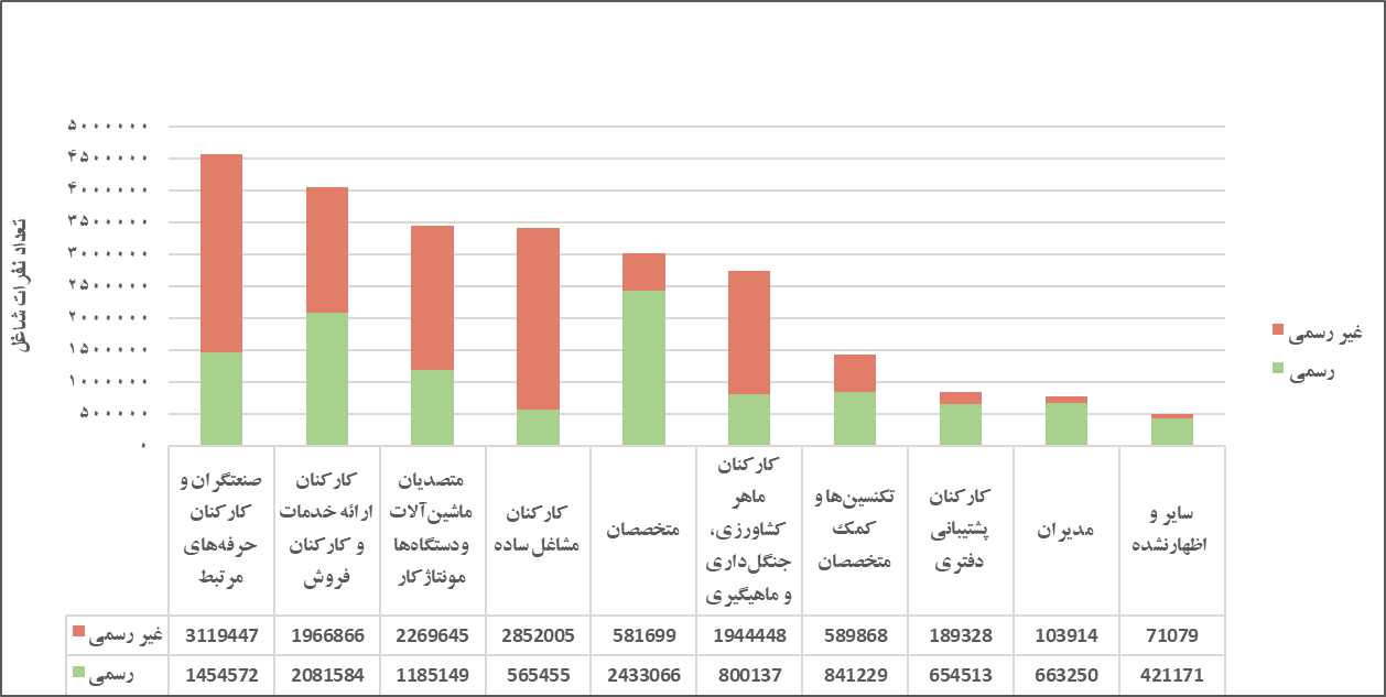 مشاغل غیررسمی و رسمی بر حسب گروههای عمده شغلی