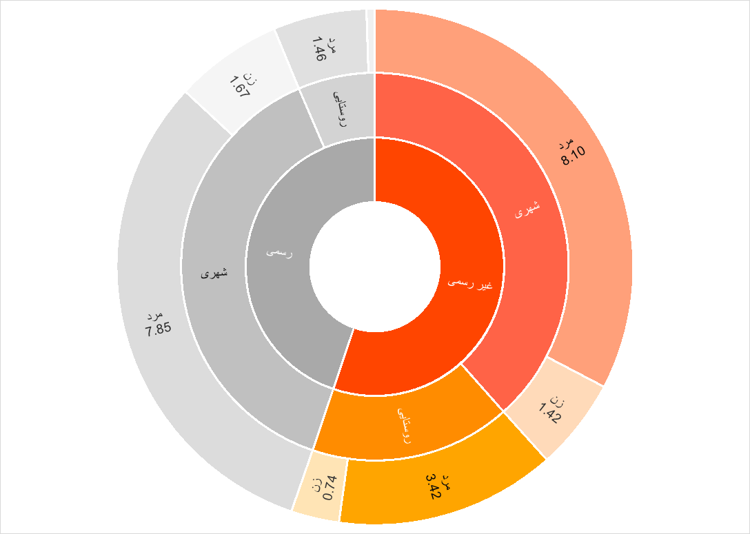 نمودار تعداد شاغلان رسمی و غیررسمی از منظر محل سکونت و جنسیت |