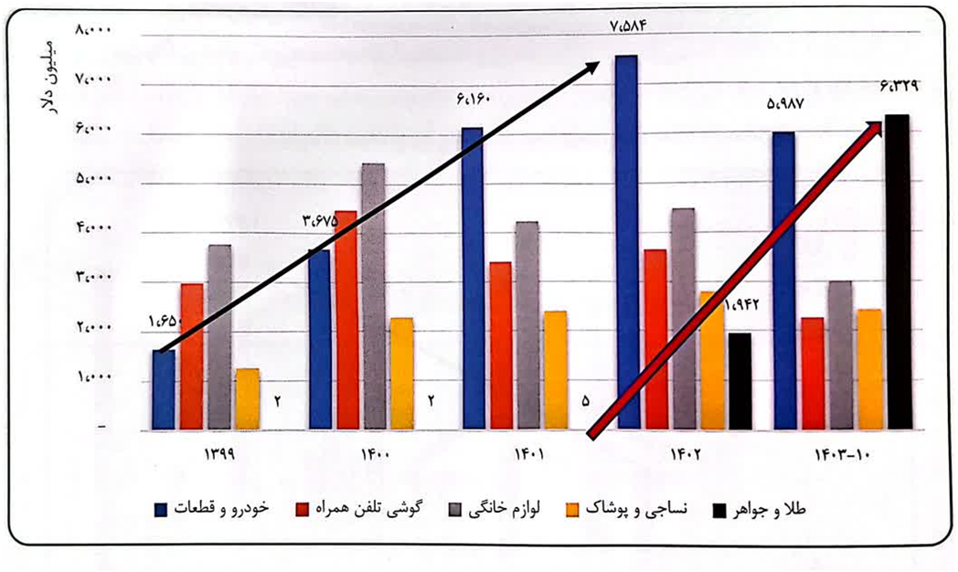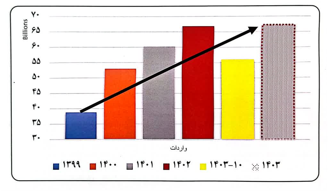 نمودار ۱- روند واردات از ۱۳۹۹ تا ۱۴۰۳