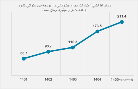 طبق یافتههای گزارش مرکز پژوهشهای مجلس در بررسی لایحۀ بودجه، مجموع اعتبارات پیشنهادی حوزۀ محرومیتزدایی در لایحه بودجه ۱۴۰۵ با رشدی معادل ۲۲ درصد نسبت به بودجه ۱۴۰۴، به رقم ۲۱۱.۴ هزار میلیارد تومان رسیده است. این در حالی است که میانگین افزایش کلی اعتبارات در این لایحه حدود ۱۴ درصد بوده است که نشاندهنده توجه ویژه به این حوزه در مقایسه با سایر بخشهاست. بااینحال، با درنظرگرفتن نرخ تورم پیشبینیشده برای سال ۱۴۰۵ (که حدود ۲۵.۵ درصد برآورد شده)، این افزایش اعتبار در واقعیت ممکن است تنها بخشی از هزینههای ناشی از تورم را پوشش دهد و الزاماً به بهبود مداخلات اجتماعی منجر نمیشود.